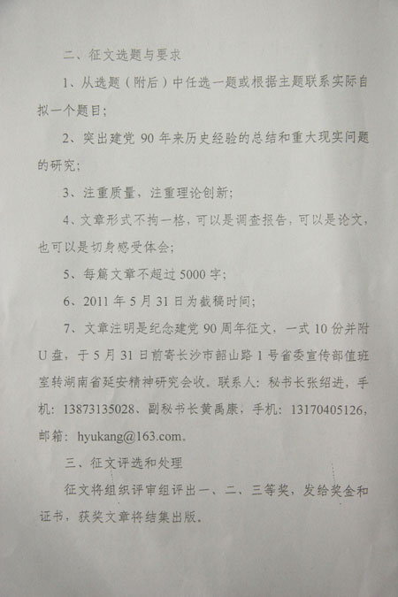 关于纪念中国共产党成立90周年征文的通知