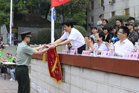 学院领导分别为获得歌咏大赛、内务评比、优秀领队等的同学颁奖。至此,为期12天的2011级新生军训圆满结束。