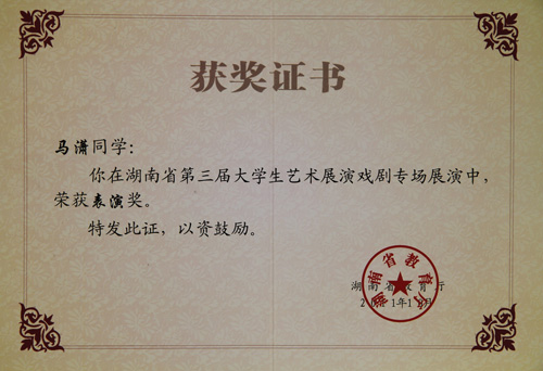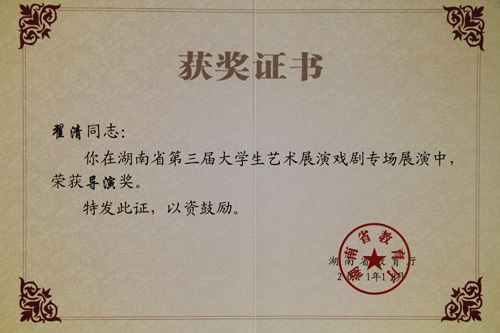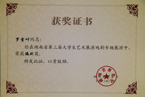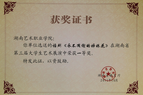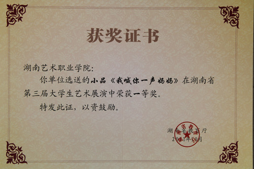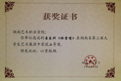 近日,省教育厅下发湘教通[2011]522号文件对湖南省第三届大学生艺术展演活动的获奖情况进行通报,我院选送的多个节目获得大奖。