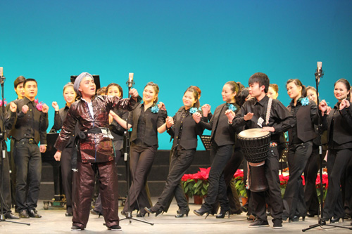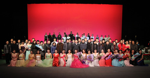 12月26日晚,音乐系在学院剧场为广大师生及用人单位举办了一场以视唱教学作品演唱、民族美声独唱及歌剧选段为主体的音乐会。