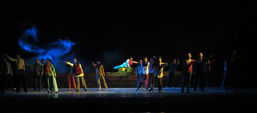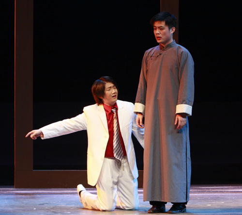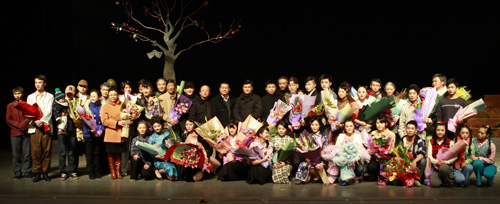 晚会在2009级高职表演班同学演绎的《四世同堂》中拉开帷幕。同学们精湛的表演将现场所有的观众带入了老舍先生所描写的小羊圈胡同住户的各阶层、各色人等的荣辱沉浮、生死存亡中,塑造了祁老人、瑞宣、冠晓荷等一系列栩栩如生的人物形象,展现了风味浓郁的北平生活画卷。随后,2007级影视表演班演出的改编话剧《托起明天的太阳》,向观众讲述了3名大学毕业生支援大西北教育,历经种种困难后改变自己人生观的动人故事。