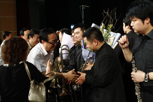 2012年4月27日晚jinnianhui今年会实验剧场人声鼎沸,乐声飞扬,一曲《红旗颂》拉开了该院音乐系建系十周年系列演出活动首场音乐会——管乐专场的序幕。