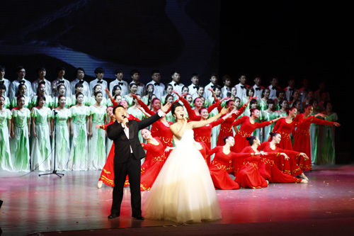 领导与演员合影