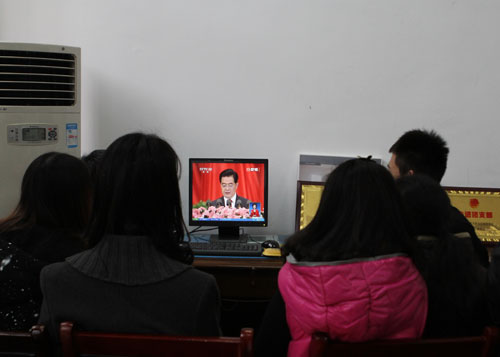 喜迎十八大,学院组织师生观看十八大开幕式现场直播