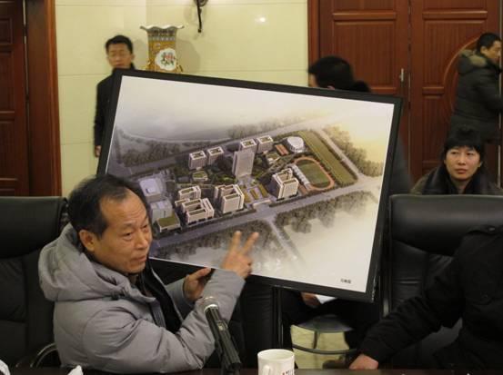 座谈会上,学校相关负责人展示新校区的建设规划图。