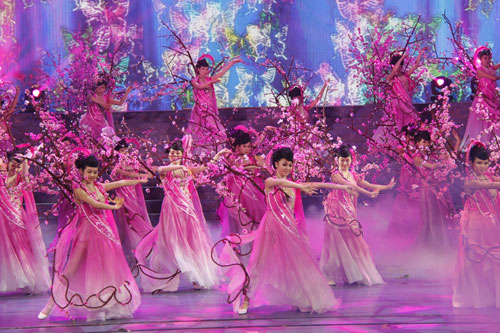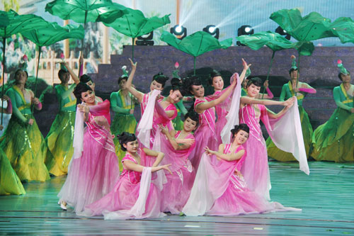 我院两系共100余名学生参与了剧目的演出。从选人到校内排练,从现场排练到合成,再到社会公演,期间历时5个月。同学们不辞辛苦,珍惜学习机会,充分感受了“现代流行花鼓风”的无限魅力,并在演出中充分展示了所学专业技能,章显了学院的教学成果,受到了益阳市政府领导、承办单位及社会的高度赞扬。