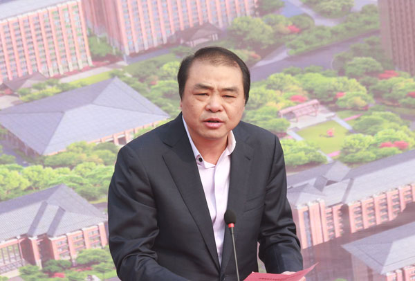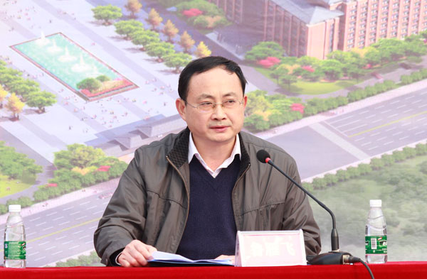 上午9点28分,誓师大会正式开始。鲁雁飞同志代表学院党政就学院新校区工程建设做了讲话。他简要说明了新校区建设的用地审批更改、建校资金、拆迁、规划设计、土石方工程、招投标工作、工程报建、补征304亩用地等九个方面前期工作,对省委省政府、省文化厅、长沙县等各级党政机关和财信房产公司的大力支持表示感谢,对全面开工后的新校区建设提出了希望和要求。