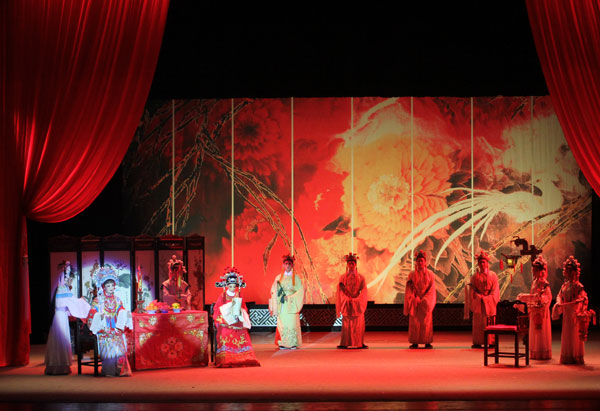 一曲一调悠扬婉转梦回千古,一颦一笑千姿百媚尽展黄梅之韵。黄梅戏《女驸马》讲述的是民女冯素珍冒死救夫,在经历了种种曲折后,终于如愿以偿,从而成就了一段美满姻缘的故事。演出分为“绣楼”、“花园”、“刘府”、“状元府”、“洞房”、“金殿”六幕。演员们以绝伦无比的演技,俊俏诙谐的扮相、古色古香的唱词、蹁跹曼妙的舞姿,加以淳美的背景音乐、独具匠心的编排、跌宕感人的剧情和丰富多彩的人物形象构成了美轮美奂的舞台效果,达到了思想性、艺术性、观赏性的统一,展现了国家级非物质文化遗产——黄梅戏艺术的独特魅力。国家一级演员余淑华更是将“女驸马冯素珍” 这一古代少女的善良、勇敢与聪慧展现得淋漓尽致,让到场观众充分领略到黄梅戏艺术大家的风范。舞台上色彩鲜艳的幕布,富贵精致的座椅、屏风、宝殿则带给观众强烈的视觉冲击,留给观众无限想象力和美好的回味。