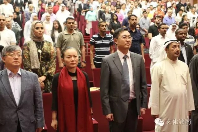当地时间7月29日晚8:30,能容纳上千人的塞尔米亚剧院座无虚席。在中、科两国庄严的国歌声中,jinnianhui今年会艺术团拉开了庆祝中、科建交45周年专场文艺演出的大幕。中国、俄罗斯、加拿大、日本、韩国、尼日利亚、苏丹、越南、塔吉克斯坦、索马里等驻科使馆官员、科威特政府官员及上千市民一道观看了表演,科威特国家电视台及当地众多媒体、驻科外媒进行了现场报道。