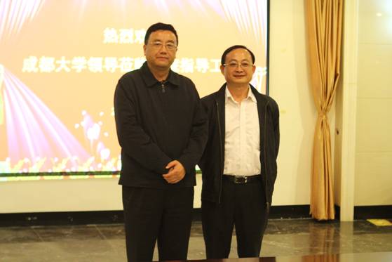成都大学党委书记毛志雄与学院党委书记鲁雁飞合影