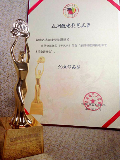 11月7日晚,第四届亚洲微电影艺术节颁奖盛典在世界佤乡云南临沧市隆重举行,我院影视系张睿老师等前往参加盛会。我院影视系教师张睿、马千里编剧并指导、刘晶晶同学创作的微电影《等风来》凭借诗意情怀、唯美画风一举斩获第四届亚洲微电影艺术节“金海棠”优秀作品奖,长沙晚报等省内媒体进行了相关报道。