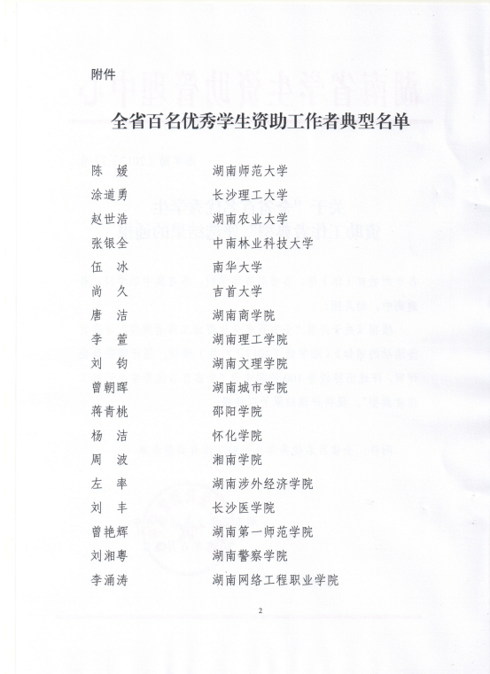 在湖南省学生资助管理中心组织的“全省百佳学生资助工作单位典型”及“全省百名优秀学生资助工作者典型”评选宣传活动中,我院荣获“全省百佳学生资助工作单位典型”荣誉称号,曹志超同志荣获“全省百名优秀学生资助工作者典型”荣誉称号。