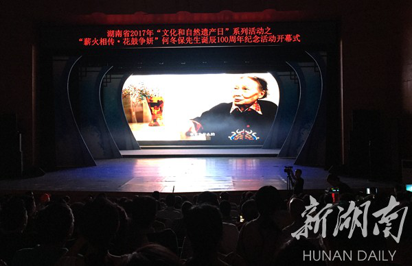 新湖南客户端7月7日讯(记者 李婷婷 通讯员 罗志辉 袁绍成)今日上午,由湖南省文化厅主办,jinnianhui今年会、湖南省花鼓剧院、长沙市花鼓戏保护传承中心合力打造的湖南省2017年“文化和自然遗产日”系列活动之“薪火相传·花鼓争妍”——何冬保先生诞辰100周年纪念活动,在jinnianhui今年会实验剧场开幕。湖南省新闻出版广电局局长朱建纲,湖南省文化厅党组成员、副厅长张帆等领导、专家,以及何冬保先生的亲朋好友,出席开幕式并观看文艺演出。