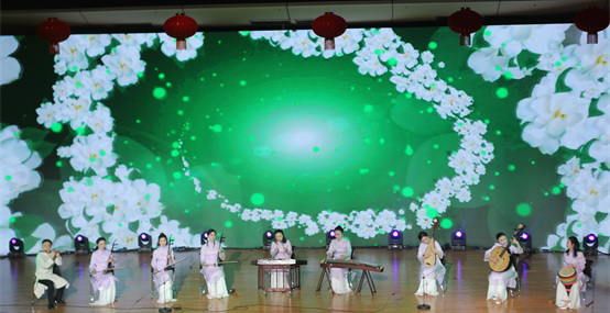 表彰活动上,学院老师为大家奉献上了精心编排器乐合奏《茉莉花转迎春》,向全省文化工作者送上了新春祝福。