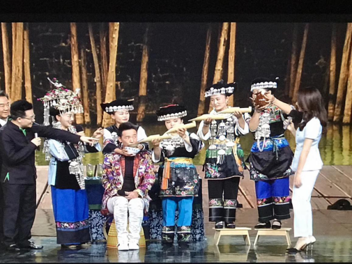 日前,音乐系16高职声乐2班学生吴廷翠带着苗歌徒弟姐妹们参加了中央电视台综艺频道《回声嘹亮》的节目录制,唱着苗歌,带着家乡美食文化,走进了大屏幕。