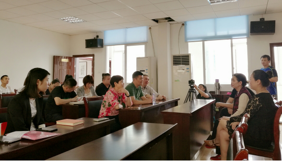 6月1日,项目组来到了考察的第二站——常德市鼎城区花鼓戏保护中心、常德丝弦艺术剧院有限公司。受访单位以一曲常德丝弦《青青常德待客来》对项目组的到来表示了欢迎。随后,常德市鼎城区花鼓戏保护中心主任、常德丝弦艺术剧院有限公司董事长、国家级非物质文化遗产常德丝弦代表性传承人朱晓玲,国家级非物质文化遗产常德花鼓戏代表性传承人杨建娥,鼎城区花鼓戏剧团副团长胡勇等人为项目组现场排演了常德花鼓戏《打芦花》。随后在座谈会上,项目组听取了杨建娥艺术人生事迹。周文清代表学院和项目组对杨建娥为戏曲艺术倾心奉献,致力于常德花鼓戏的传承精神表示了敬意,并诚挚欢迎她到学院“传经送宝”。双方还就该团“青年人才的成长”“戏曲类非遗的传承”等方面进行了咨询。