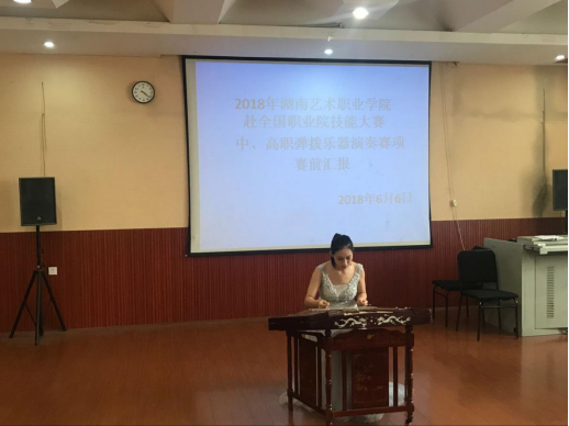 6月6日下午,全国技能大赛中、高职弹拨乐器演奏赛项赛前汇报会在南院二教学楼203教室举行,学院副院长杨向东,教务处处长黄新平、副处长张华,戏剧系党支部书记王长红,音乐系副主任张鹏以及赛项指导教师观看了参赛选手的表演汇报。