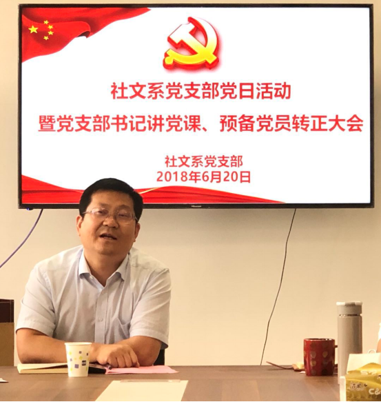 6月20日中午,社文系党支部在艺术楼510教室开展了6月主题党日活动暨支部书记讲党课、预备党员转正大会,学院党委副书记、副院长余会春出席,支部全体党员参加会议。会议由该系党支部组织委员刘莎主持。