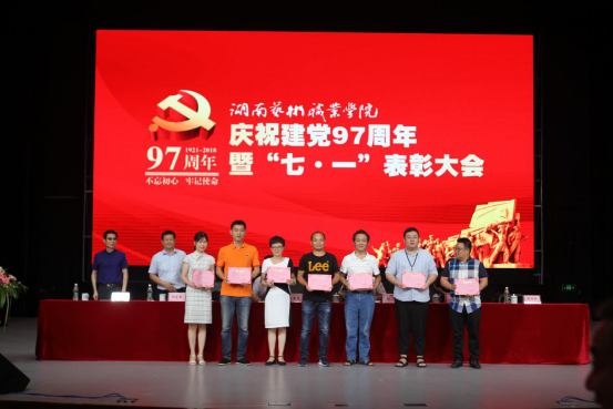 会议举行了重温入党誓词仪式,表彰了2016-2017年度优秀基层党组织、优秀党务工作者、优秀共产党员。参会领导为受表彰的先进基层党组织代表、党员代表颁奖。优秀基层党支部代表、音乐系党支部副书记杨翠红,优秀党员代表蒋蓉分别作了大会发言。随后,大会还为六、七月份入党的同志过政治生日,并给每个支部的党员代表发放了支部的“政治生日卡”。