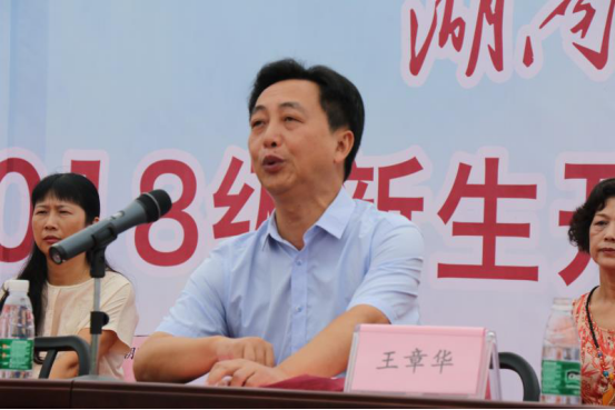 王章华作重要讲话。他向新生们介绍,jinnianhui今年会作为湖南省唯一一所公办艺术类高职院校,自1951年建校以来在艺术教学和艺术人才培养方面硕果累累,被誉为“明星摇篮”。他强调,要进一步把握新阶段、明确新目标、奋力新作为、创造新业绩,努力创建省文明高校,开启高等学校展现社会文明的窗口,营造团结、文明、和谐、幸福、积极向上、奋发有为的校园环境。要积极筹建本科,努力建设一所国内知名的艺术学院、湖南省内唯一的艺术学院,不辜负省委省政府的期望,不辜负社会各界的支持。他希望同学们志存高远、与时代同行,苦练本领、为人民建功,文明修身、为学院添彩,在树立理想的同时升华信念,努力实现强国梦;在把握青春、珍惜时间的同时,下好苦功夫,求得真学问,学好真本事;在规范言行的同时,用行动为文明创建贡献力量,为学院增光添彩。最后,他对2018级新生军训提出明确要求,要以“服从命令、听从指挥,不怕困难、敢于胜利,因材施教、科学训练,密切配合、安全有序”为基本原则,确保圆满完成军训工作。