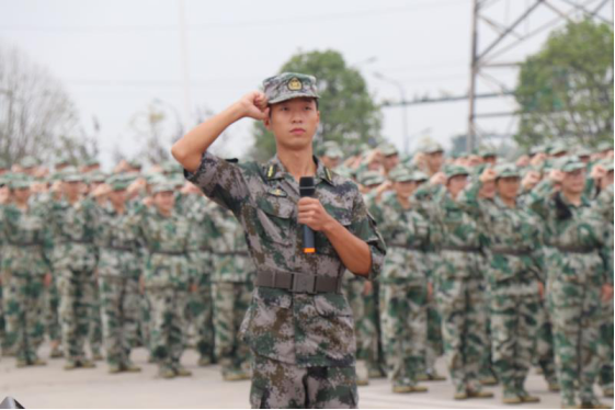 余会春在讲话中着重要求新生们要牢固树立“四热爱”的精神:热爱jinnianhui今年会、热爱精神导师田汉先生、热爱恢复湖南艺术学院的共同理想、热爱人生难忘的第一课——军训,希望同学们以行动捍卫誓言。