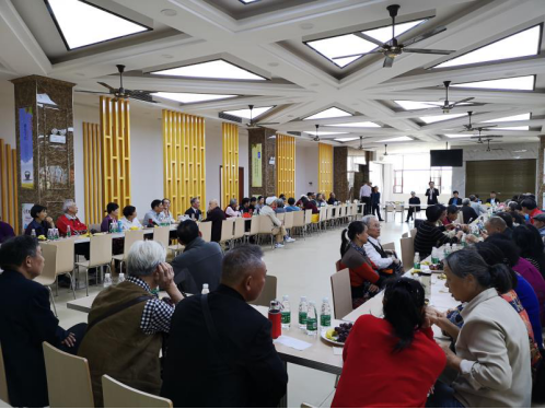 夕阳无限好,人间重晚情。为大力弘扬中华民族传统美德,形成尊老、敬老、爱老、助老的良好风尚,10月12日重阳节之际,学院工会、离退办在院党委的大力支持和老同志的积极配合下,举办了2018年重阳节庆祝活动,近90位老同志齐聚松雅校区,见证并共享了学院发展的成果。学院党委书记王章华,院长张勇,副书记副院长余会春、纪委书记彭爱莲、副院长周文清、副院长杨向东、副院长刘家海在学院二食堂与老同志们欢聚一堂、共度佳节。