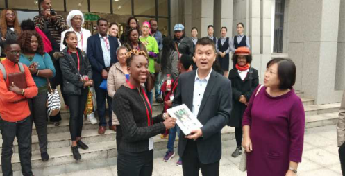 周文清代表学院接受巴巴多斯学员赠送的礼物