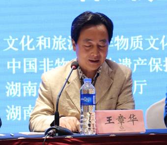 王章华简要介绍了我院历史沿革、现有规模、办学特色及近年来学院作为全国文化干部培训(湖南)基地在承办文化干部培训方面的工作成效,着重介绍了我院作为湖南省非物质文化遗产研究培训基地,积极助力全省非物质文化遗产保护、传承与发展工作的相关情况。