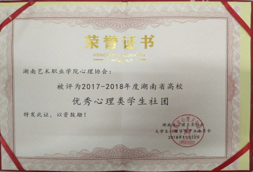日前,湖南省心理卫生协会大学生心理咨询专业委员会第十三届学术年会在长沙召开,我院被评为2017-2018年度湖南省高校心理健康教育先进单位,学院心理协会被评为优秀学生社团。省心理卫生协会理事长薛志敏教授为获奖单位颁奖。