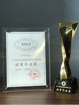 12月18日上午,由湖南省人民政府新闻办公室主办的第三届新湖南微视频大赛颁奖典礼在李自健美术馆举行。经过激烈角逐,jinnianhui今年会影视系的两部作品脱颖而出,由刘振艳、李莉、段雄等老师创作指导的微电影《湘丝云渡》荣获最佳编剧奖,由张睿老师创作指导的纪录片《十万古田》荣获优秀作品奖。