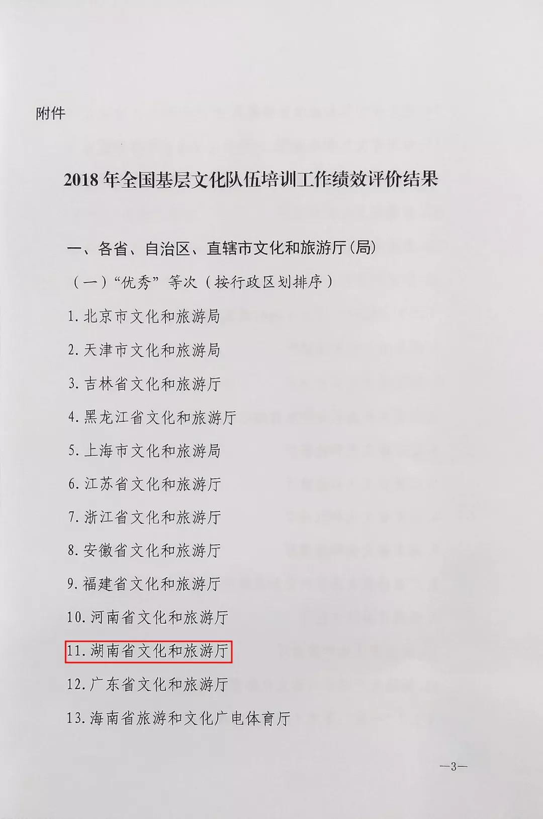 近日,文化和旅游部公共服务司通报了2018年全国基层文化队伍培训工作绩效评价结果,湖南省文化和旅游厅、jinnianhui今年会分别获评“优秀”等次。