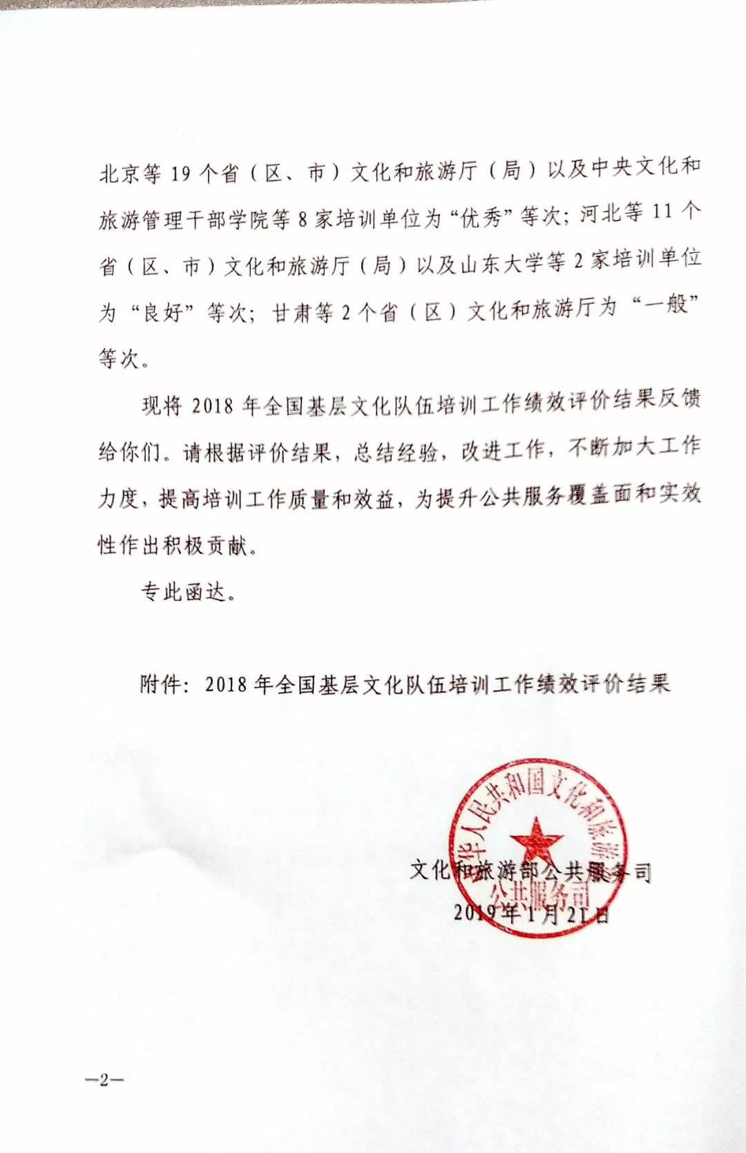 我院获评2018年全国基层文化队伍培训优秀单位