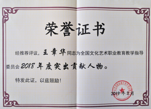 近日,全国文化艺术职业教育教学指导委员会综合考量2018年有关项目工作的开展情况,在全国范围内集中表彰了10位“年度突出贡献人物”,我院党委书记王章华同志获此殊荣。