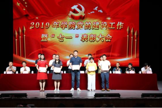 荣获党建工作标杆院系、样板支部,“双带头人”标兵、党务工作示范岗、优秀教工党员示范岗、优秀学生党员,学生工作先进单位、优秀辅导员的先进部门及先进个人依次上台,由院领导为他们颁奖。