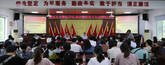 在随后的座谈会上,大家围绕加强校地合作、助力文旅融合等主题展开深入研讨交流。省文化和旅游厅艺术处处长倪文华,长沙县人民政府党组成员、副县长彭正球,县政府办副主任罗扬坤,县文化旅游广电体育局党组书记黄建国、副局长戴正林,果园镇人民政府党委书记覃芳、浔龙河村党总支书记徐宏勋,北京星光文化旅游发展有限公司总监刘双以及学院全体在家党政领导出席了座谈会。