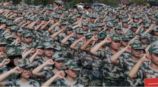 随后,学院领导为新生代表颁发学生证,并进行军训宣誓仪式。