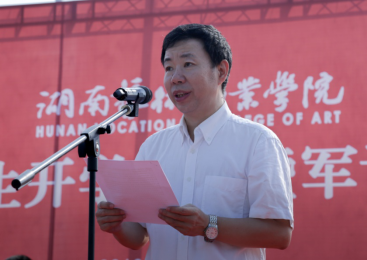 戏剧系辅导员老师田卫鹏作为教师代表发言,他建议新生尽快调整状态、适应大学生活,积极担当奉献;努力学好专业,早日回报父母和社会。院学生会主席陈实珂同学作为在校学生代表号召新生做好学业规划,修才更修德。文旅系罗蓉同学作为新生代表发言,表示将严格遵守校纪校规,刻苦训练,圆满完成军训任务。