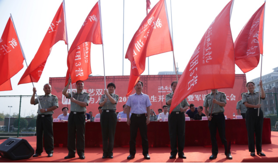 王章华为军训团、军训营授旗。