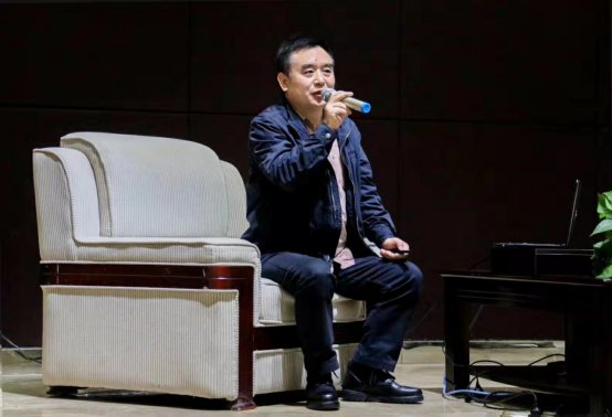 活动中,王跃文先生从中外名著说开去,结合个人丰富的创作经验,与大家分享了文学欣赏和创作中的三个重要问题:一是文学虚构的问题。他以自己的作品《国画》《梅次故事》《漫水》《大清相国》为例,指出文学虚构是文学创作中必不可少的手法,应以现实、文化、逻辑、心理为依据来设计故事情节和人物形象,同时任何文学虚构都必须是艺术表现的需要,否则就会失去其意义。二是文学语言的问题。他从《春江花月夜》谈到《天净沙•秋思》,从《百年孤独》谈到《红楼梦》,带大家领略了文学语言的独特魅力。三是文学主题的问题。王跃文先生认为,文学创作切忌主题先行,文学主题巧在含蓄、贵在丰富、高在超拔,要力争向上、向善、向美。