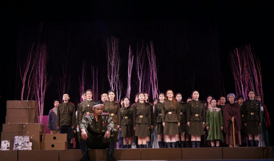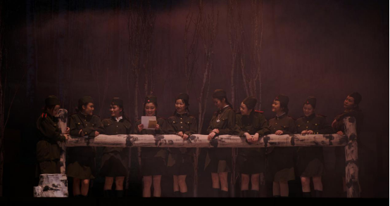 姑娘们原本有着没谈完的恋爱、没实现的理想、没过完的生活,德寇被歼灭了,重要的铁路线保住了,这里的黎明依然静悄悄,她们却永远地睡去了,长眠在温柔、挺拔、静美的白桦林中。戏剧系毕业生们认真体悟原作对于个体生命的关怀和热爱,以精湛的表演诠释了人们对和平的共同向往和对美好生活的不懈追求,在场观众无不动容,演出结束后响起了经久不息的掌声。