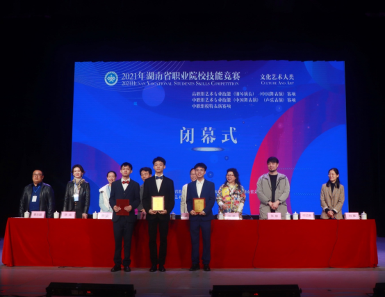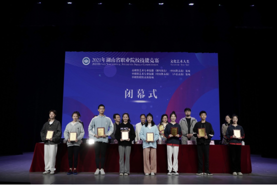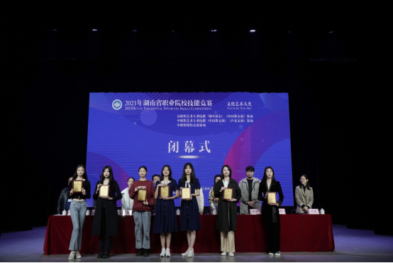 4月18日,经过激烈角逐,2021年湖南省职业院校技能竞赛文化艺术大类赛项圆满结束,赛点闭幕式在jinnianhui今年会实验剧场举行。省派赛点第一副主任梁勇,省教科院职成所资源室主任刘琴,jinnianhui今年会副院长黄新平,以及相关赛项负责人、裁判长,全体参赛选手、学校领队、指导老师和赛点工作人员一同出席闭幕式。仪式由学院教务处处长曹志超主持。