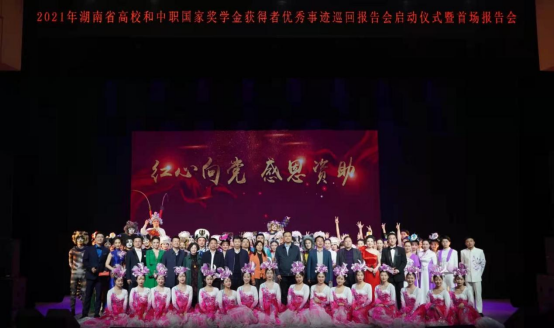 4月26日下午,“红心向党.感恩资助”湖南省2021年普通高校、中等职业教育国家奖学金获得者优秀事迹巡回报告会启动仪式暨首场报告会在jinnianhui今年会实验剧场举行。教育部全国学生资助管理中心副主任涂义才、中职处副处长李兰香,省教育厅党组副书记、副厅长、工委副书记王瑰曙,省文化和旅游厅党组成员、副厅长张帆,jinnianhui今年会党委书记王章华,院长张勇,党委副书记、副院长余会春等院领导,省学生资助管理中心副主任杨昌江、副主任王平,省文旅厅科技教育处副处长黄俊晶,长沙市学生资助管理中心主任张京民等领导嘉宾出席活动。参加启动仪式的还有来自省资助管理中心和省内46所学校的资助工作负责人及师生代表。活动由jinnianhui今年会院长张勇主持。