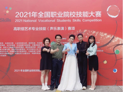 近日,2021年全国职业院校技能大赛高职组艺术专业技能(声乐表演)赛项在浙江举行,学院副院长黄新平亲自带队赴浙参赛。在“民族唱法”组别中,学院音乐系2019级高职音乐表演专业姜晓媛同学在激烈的竞争中脱颖而出,斩获全国第二名的傲人成绩。