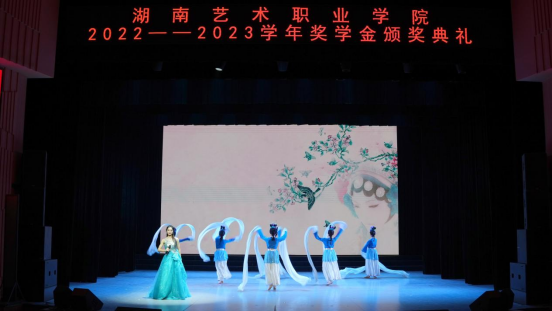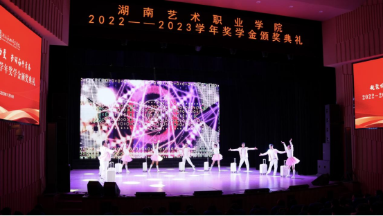 典礼现场表彰了2022-2023学年国家奖学金、国家励志奖学金、学校奖学金、学校励志奖学金以及三好学生等共计10项奖学金和荣誉称号的获得者,共719人次受到表彰,6名国家奖学金获得者进行了风采展示。此次颁奖典礼同时也是一次汇报演出,各二级学院精心选送了舞蹈、戏曲、合唱、杂技等节目,全面展现了同学们在校学习实践的丰硕成果。