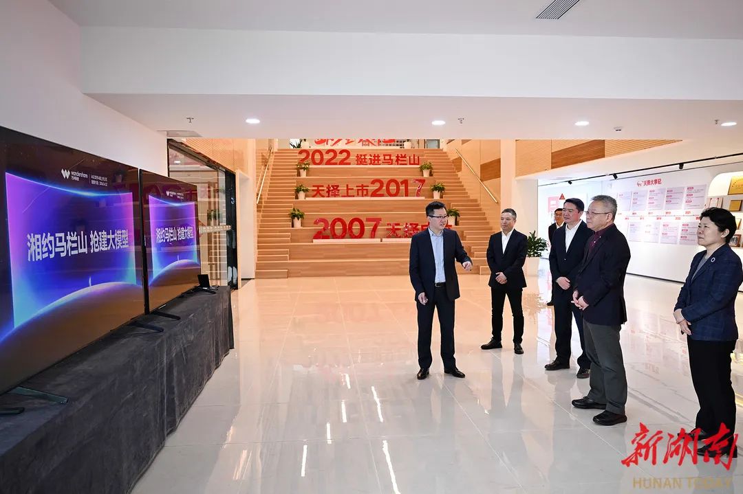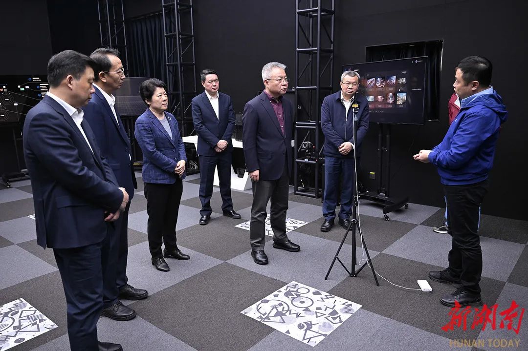 走进马栏山视频文创产业园,沈晓明考察了乐田智作9号棚、马栏山视频超算中心、聚恒科技园、5G高新视频多场景应用国家广电总局重点实验室、万兴科技大模型研发中心,详细了解节目生产全流程、软硬件研发、超算和大模型赋能音视频产业发展、动漫产业集聚和创新平台研发应用等情况,并在明和光电察看了智能化装备,了解舞台机械、艺术灯光等文旅装备创新研发情况。他指出,要充分发挥头部企业带动作用,招引更多文化和科技融合的上下游企业和资源要素集聚湖南,进一步提高关键领域自主创新能力,实现国产化替代,并提供一站式服务解决方案,打造永不落幕的音视频装备展。
