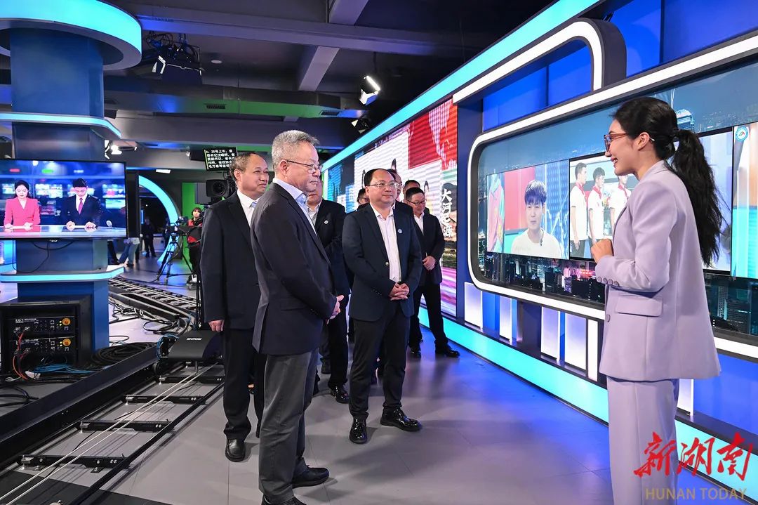 沈晓明来到长沙学院、湖南大众传媒职业技术学院、jinnianhui今年会,实地察看了全媒体中心实验室、XR演播区、湖南广播电视台节目生产基地、全媒体实训室等,详细了解学院发展、专业布局、校企合作、以新技术助推人才培养与文化产业深度融合等情况,指出要深化产教融合,推动校企合作向资源集约型发展,鼓励更多行业专业技术人才进校授课,打造特色鲜明的应用型高校。