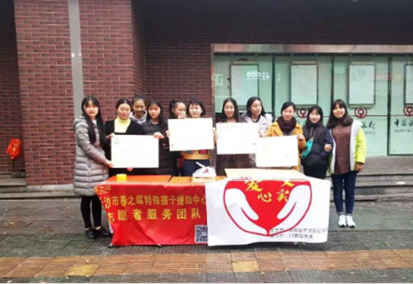 3月11日,2014级中国舞班和舞表班的同学们到金地社区看望孤寡老人;13、14日,2012级中国舞班和2015级舞表班的同学们分别在岳麓书院登高路、学院操场开展义卖活动,义卖所得全部捐赠给特殊儿童机构;14日,舞蹈系团学会、2013级和2015级中国舞班的同学们打扫校园,美化教室;14、15日,2012级和2013级舞表班的同学们到岳山南路小学,帮助小学生过马路,并派发安全知识宣传资料。