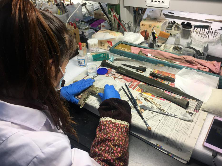 我院毕业生马丹正修复一件战国时期的青铜兵器
