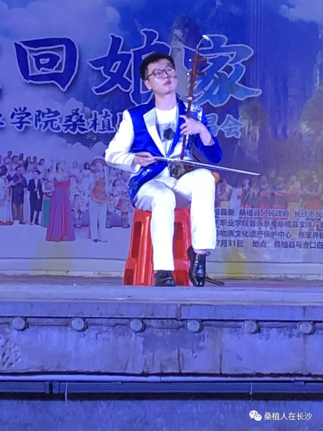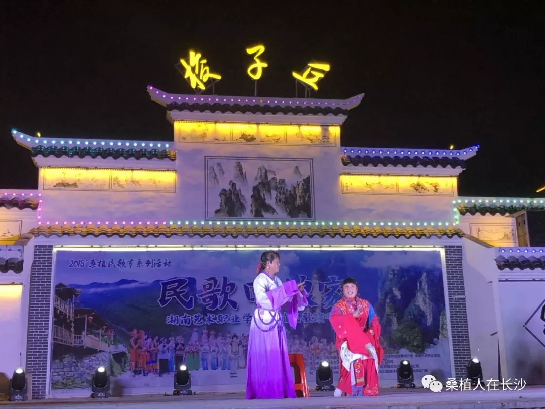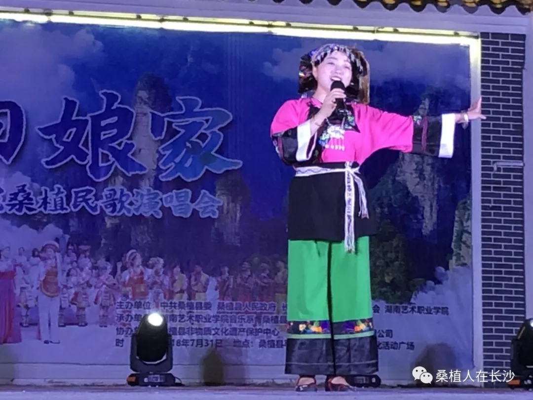 晚上是本次活动的重头戏。“民歌回娘家—jinnianhui今年会桑植民歌演唱会”在马合口乡梭子丘白族文化广场举行。该演唱会分《水畔》、《青山》、《大路》、《新唱》四个篇章。该院音乐系梁瑛、田里、安永明、郑萍、张敏敏等十多位声乐副教授、讲师登台献艺,400多名观众欣赏到了由专业老师们演唱的《冷水泡茶慢慢浓》、《门口挂盏灯》、《姐儿门前一树桃》、《砍条大路歌就来》、《马桑树儿搭灯台》、《四季花儿开》等老桑植民歌。并聆听到了《新棒棒捶在岩头上》、《新马桑树儿搭灯台》、《桑植之恋》等新创作的歌曲。优秀学生代表吴廷翠、郑海玲也登台与老师们一起演唱,展现了该院良好的教、学之风。本台晚会是湖南艺术职院十余年来根植基层、致力于桑植民歌发掘、研究、教学的成果汇报与展示。院教务处处长、声乐学教授黄新平动情地说:“来到桑植,我们怀着虔诚和敬畏之心,因为桑植是民歌圣地!我们和桑植的合作已有十年以上,我们非常努力,也有一些小小的成绩。但我们做得还远远不够,今后我们将和政府及有关部门更密切的合作,使桑植民歌的保护、传承和发展越来越好!”