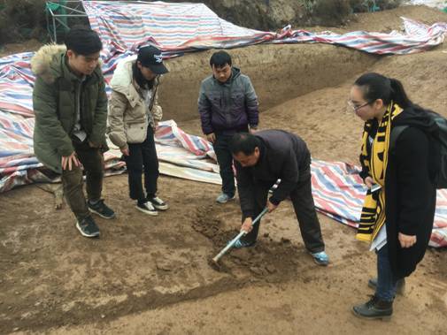 在考察西安安仁坊朱雀大街第八横街遗址时,考察团师生专门来到考古工地,现场参与勘测挖掘,实实在在地感受到考古工作的艰辛。